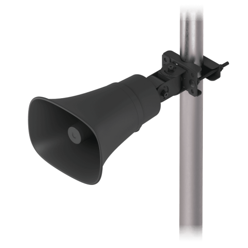 All-weather PoE 120 dB horn speaker with advanced AI alert functionality and versatile wall, corner, and pole mounting options.